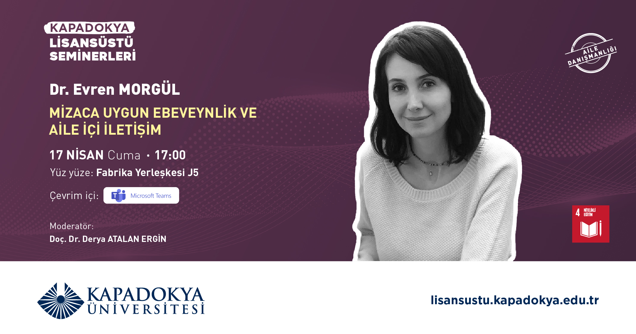 Etkinlik Detayları 02 Nisan 17.00 Microsoft Teams Prof.Dr. Halil TEKİNER Kapadokya Üniversitesi Lisansüstü Eğitim, ...