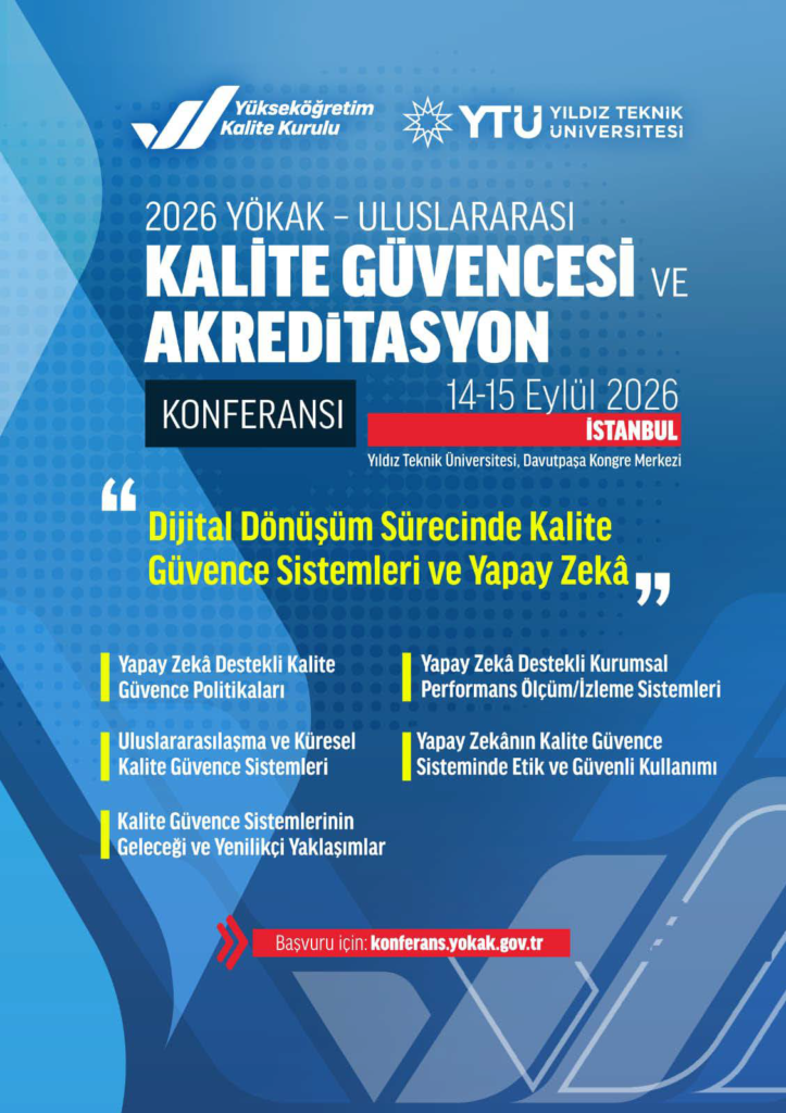 Yükseköğretim Kalite Kurulu (YÖKAK) Başkanlığı tarafından, 2024 yılında başarıyla gerçekleştirilen ve ulusal ile uluslararası düzeyde yoğun ilgi gören Uluslararası Kalite Güvencesi ve Akreditasyon Konferansı’nın ikincisi, Yıldız Teknik Üniversitesi ev sahipliğinde 14–15 Eylül 2026 tarihlerinde İstanbul’da “Dijital Dönüşüm Sürecinde Kalite Güvence Sistemleri ve Yapay Zekâ” temasıyla düzenlenecektir.